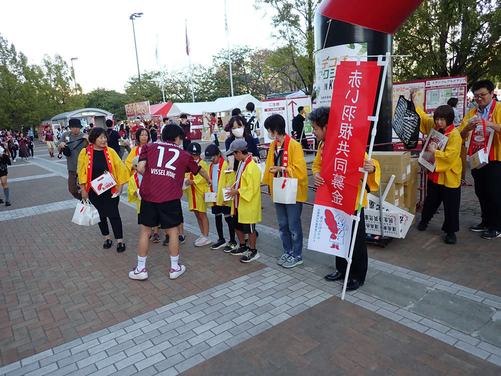 10月17日(金)、運南東・運南西民生委員児童委員協議会のみなさまと、御崎児童館のこどもたちと一緒にノエビアスタジアム神戸にて、赤い羽根共同募金街頭募金運動に取り組みました。 こどもたちの呼びかけにより、多くの方に募金協力をいただくことができました。 参加された方、募金をしてくださったみなさま、心よりお礼申しあげます。